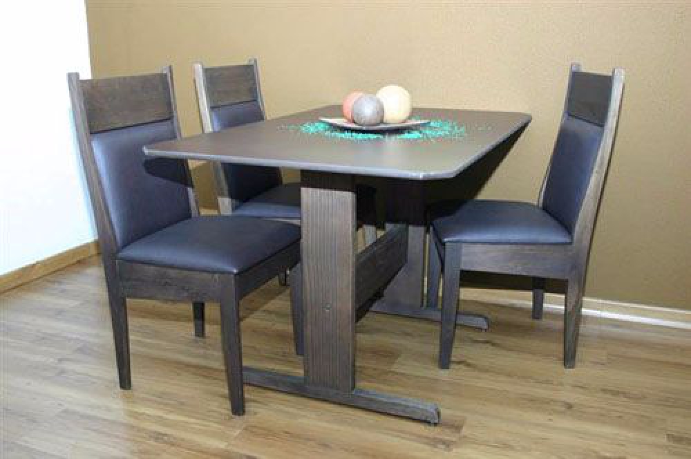 Mesa retangular de 80x120cm ou 80x130cm base madeira maciça e tampo em mdf bp temos diversas medidas. Com 4 cadeiras C03