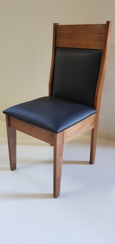 CADEIRA EM MADEIRA MACIÇA CORES TABACO IMBUIA OU MEL. COM ACENTO E ENCOSTO ESTOFADO EM SUEDEN OU COURO SINTETICO.