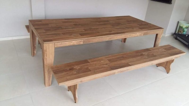 MESA EM MADEIRA MACIÇA 275X100CM 070 ALTURA ACOMPANHA DOIS BANCOS.